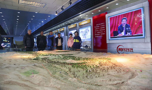 在治沙纪念馆,民勤治沙公益达人马俊河介绍了民勤人饱受沙害、艰苦治沙、努力生产的历史资料。为了保护河西走廊的生态环境,减少水土流失,抵御风沙,保护农田,秉承艰苦奋斗的优良传统,民勤人发挥“勤朴、坚韧、尚学、求真”的民勤精神,在党和政府的正确领导下,全方位开展沙漠治理和种梭造林活动,使全县生态环境整体恶化的趋势得到遏制,生态植被逐步恢复,目前森林覆盖率达到了13%。