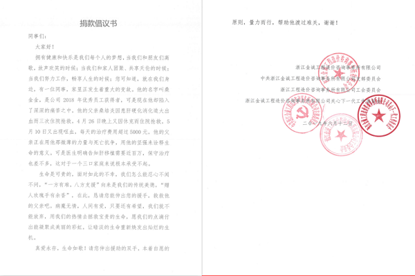善款有限,爱心无价。本次爱心捐款活动,体现了浙江金诚团结互助的精神和手足情谊,也让员工真正感受到了“金诚大家庭”的温暖。