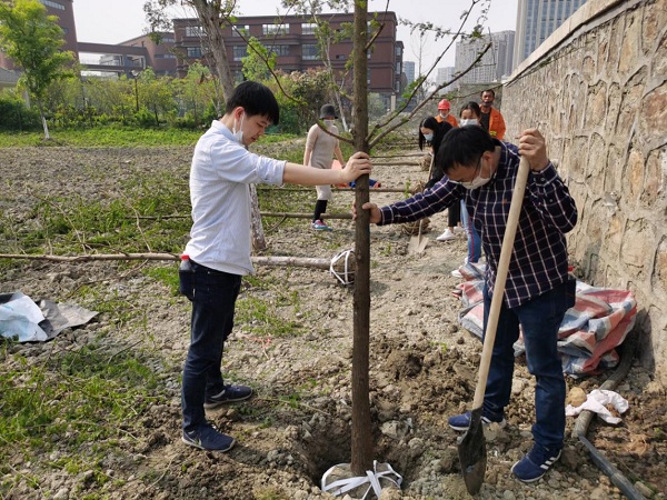 此次活动,我司共认建了3株水杉树苗,经过松土、挖坑、下苗、填土、压土、浇水等一系列工序,大家配合默契,一株株树苗在春风吹拂下点头微笑,向我们昭示生命的力量。
