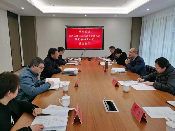 2021年3月18日,浙江省建设工程造价管理总站邓文华站长、李萍副站长等一行莅临公司走访调研。公司党支部书记、总经理蔡红伟,总经理助理卢扬、张立亮等参加调研。