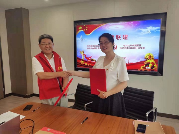 6月25日下午,党支部与米市巷街道锦绣社区党委签订了党建联建协议,建立两新企业为所在社区服务的党建“共同体”,健全互联互动机制,通过实行组织共建、资源共享、活动共联、服务共推,努力构建开放、融合、共享的两新党建工作新格局。