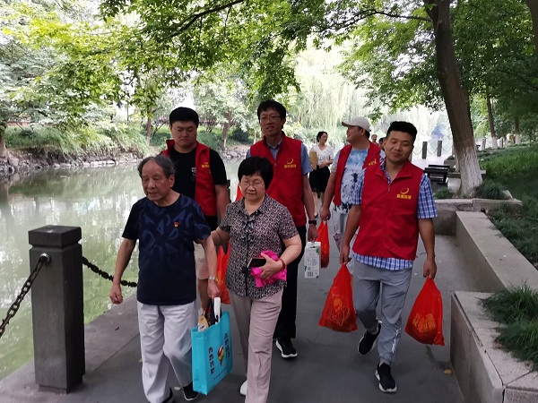 支部还慰问了坚守高温一线的“锦绣大姐”巡逻队员,为他们送去问候和关怀。这些常年服务在社区大街小巷的志愿者们,大多数是已经退休的老同志,为了构建和谐文明家园,自愿组织参加巡逻队,为平安社区服务,他们那种务实的精神值得我们每一位在场的党员学习。