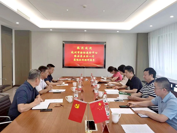 2022年9月1日,杭州市招标造价中心党总支书记、主任陈安东一行莅临公司走访调研,公司党支部书记、总经理蔡红伟,总经理助理黄小元,综合部经理苏建辉等参加调研。市招标造价中心党总支副书记韩萍、市造价协会党委书记陆开林等陪同调研。