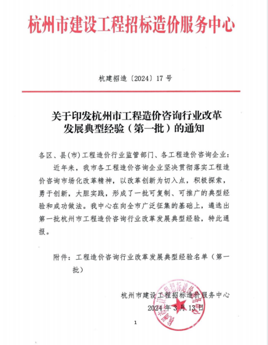 我司“党建引领品牌发展”成功入选 杭州市招标造价行业改革发展典型经验