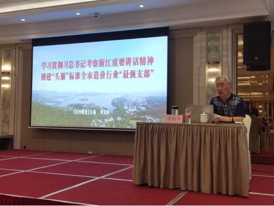 随后,与会全体党员聆听了《杭州建设》主编李绍昇关于《学习贯彻习总书记考察浙江重要讲话精神,创建“头雁”标准全市造价行业“最强支部”》的主题党课。李处长指出,新形势下,我们要坚决贯彻落实省、市委有关决议精神,扛起“三个地”的使命担当,进一步把习近平总书记重要讲话精神贯彻到衡量标准上、融入到思想举措上、体现到精神状态上、落实到工作成效上,以“头雁”标准展现我们造价行业党建工作的时代特点。